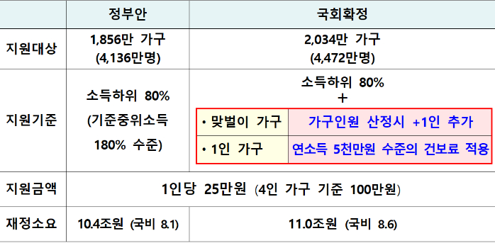 7월 23일 2차 추경이 통과되어 코로나19 5차 재난지원금 지급이 확정되었다.